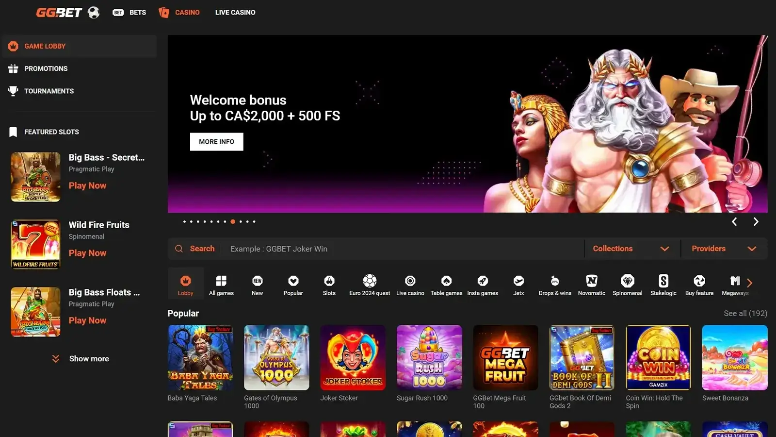 GGbet casino bonuses