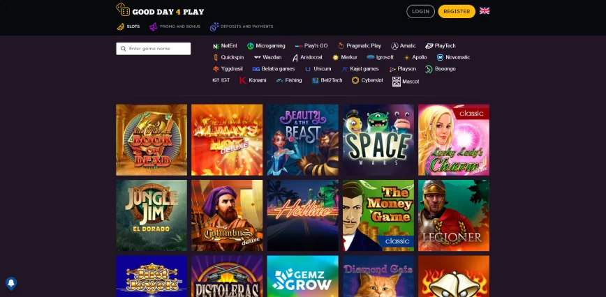 The operator offers an impressive library of 6,000 games from 44 providers, spanning a variety of categories. Players can choose from slots, blackjack, roulette, and live casino. The best casino games at Good Day 4 Play are presented in the table below.